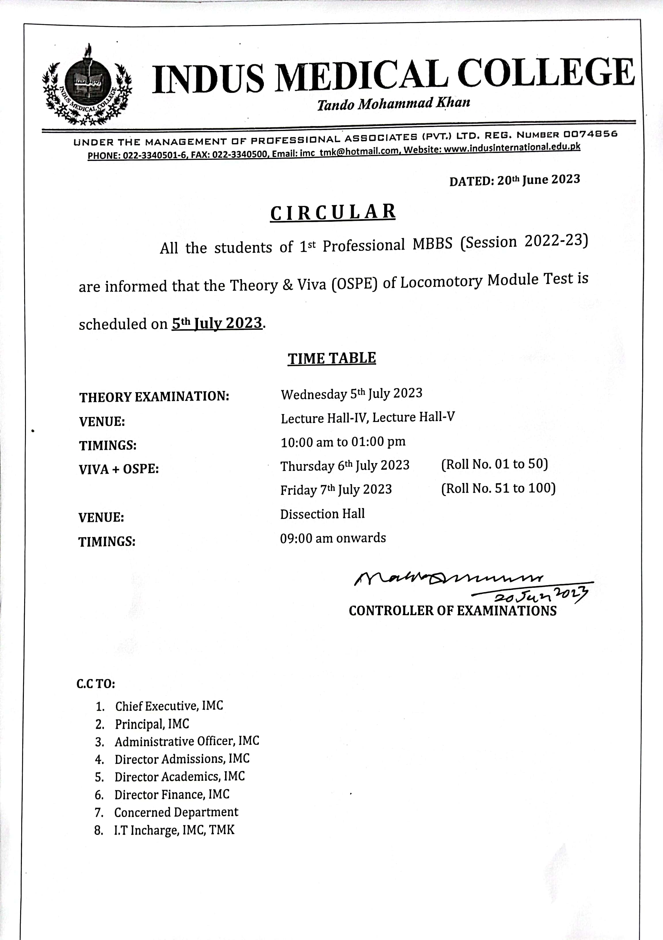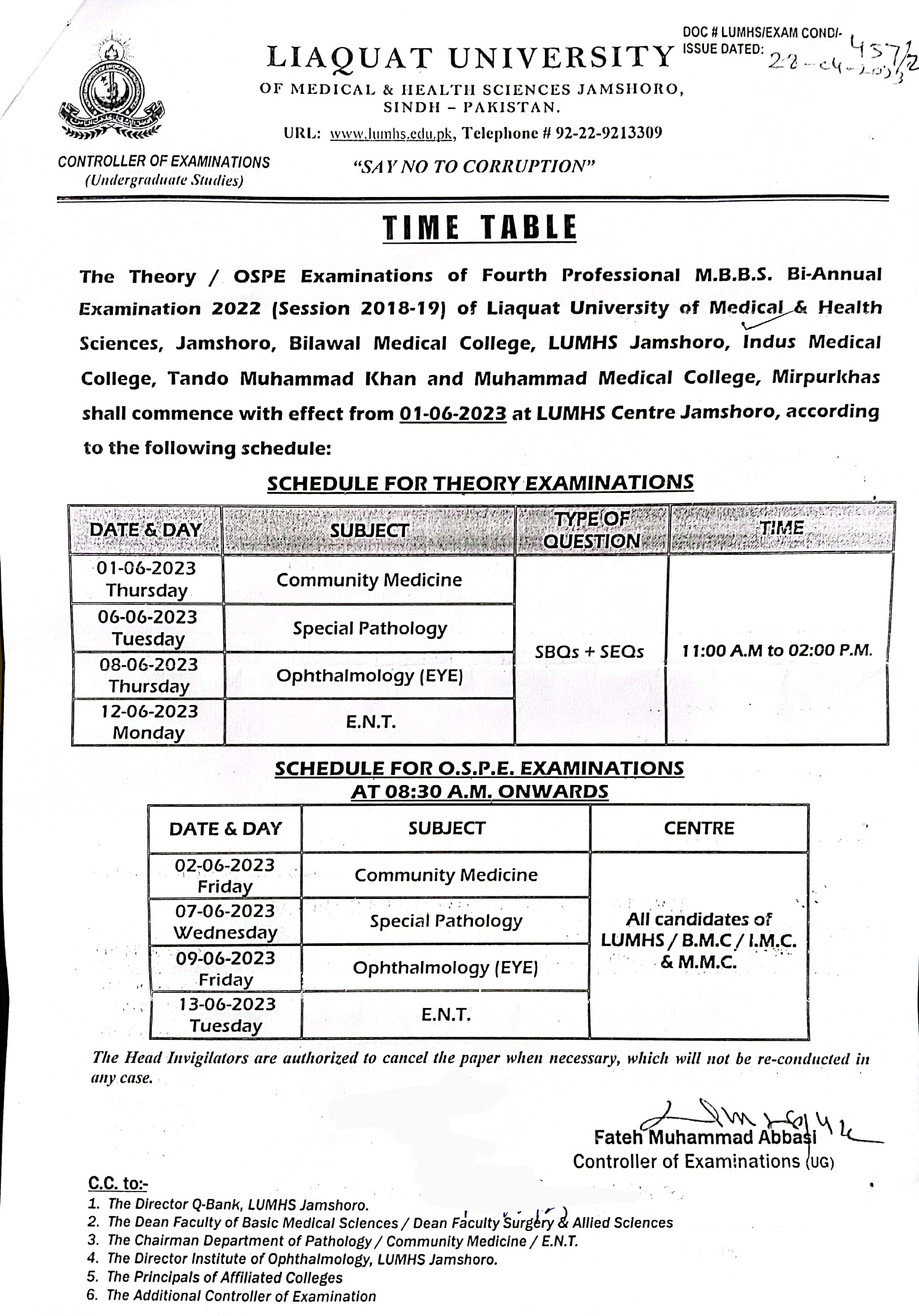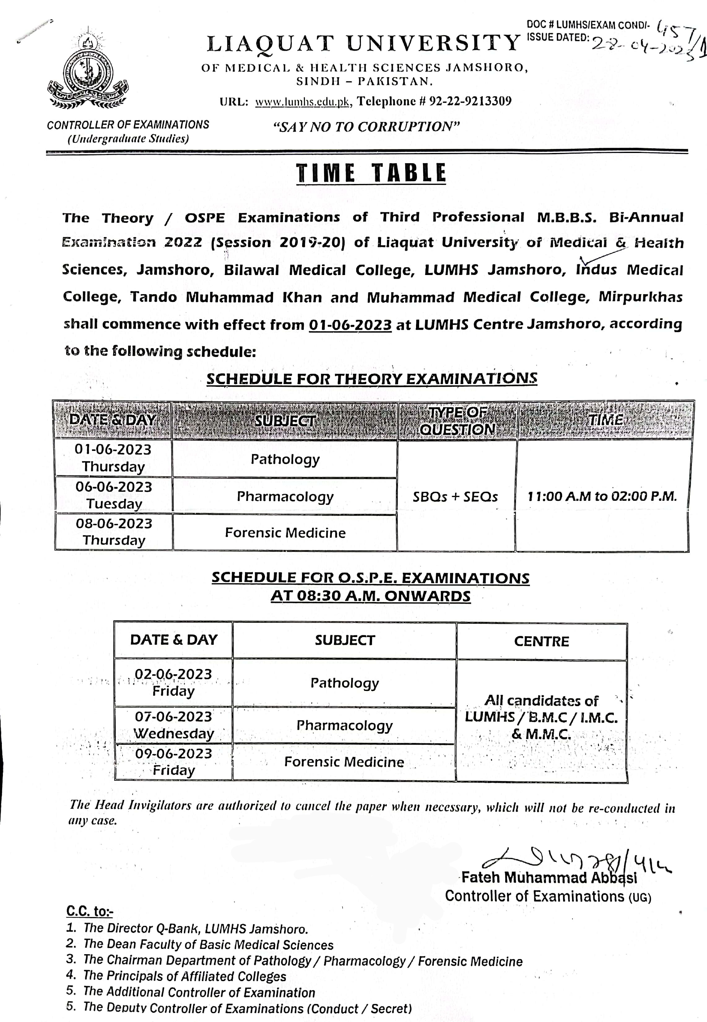 TIME TABLE OF OSPE/VIVA VOCE OF ALL BATCHES