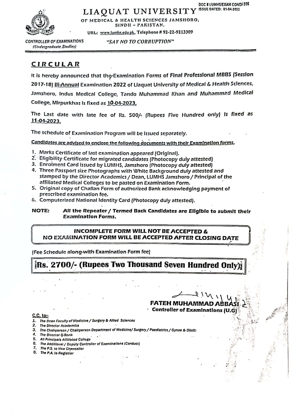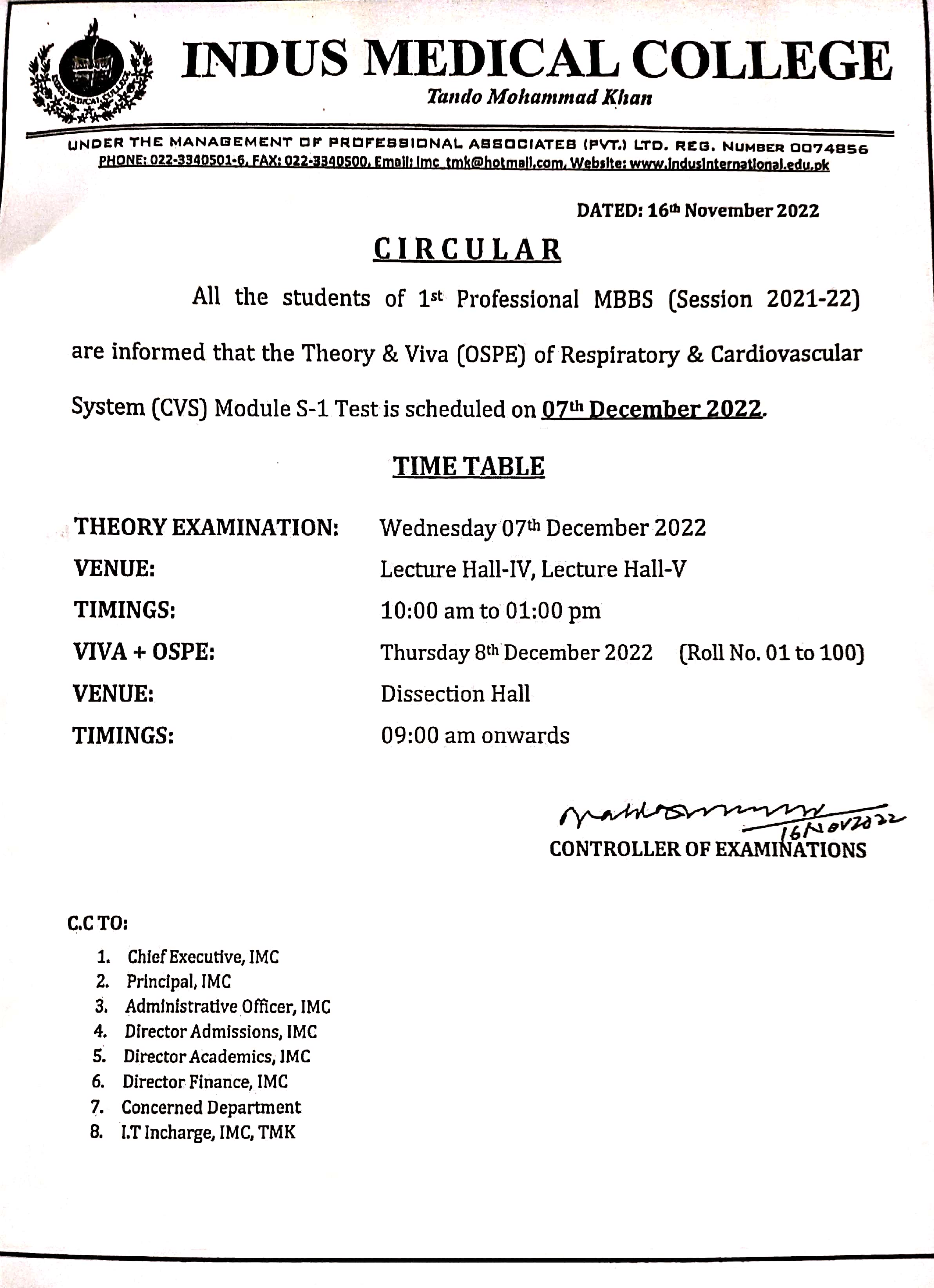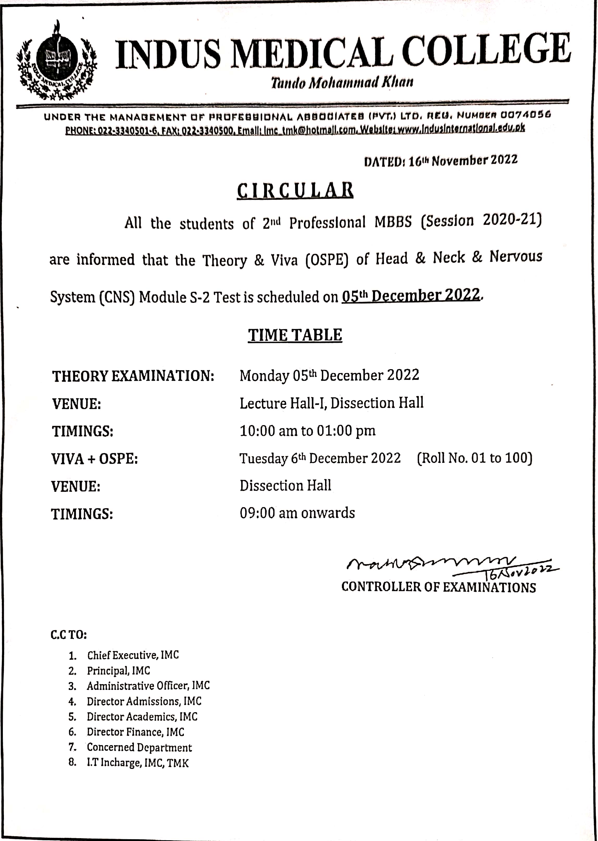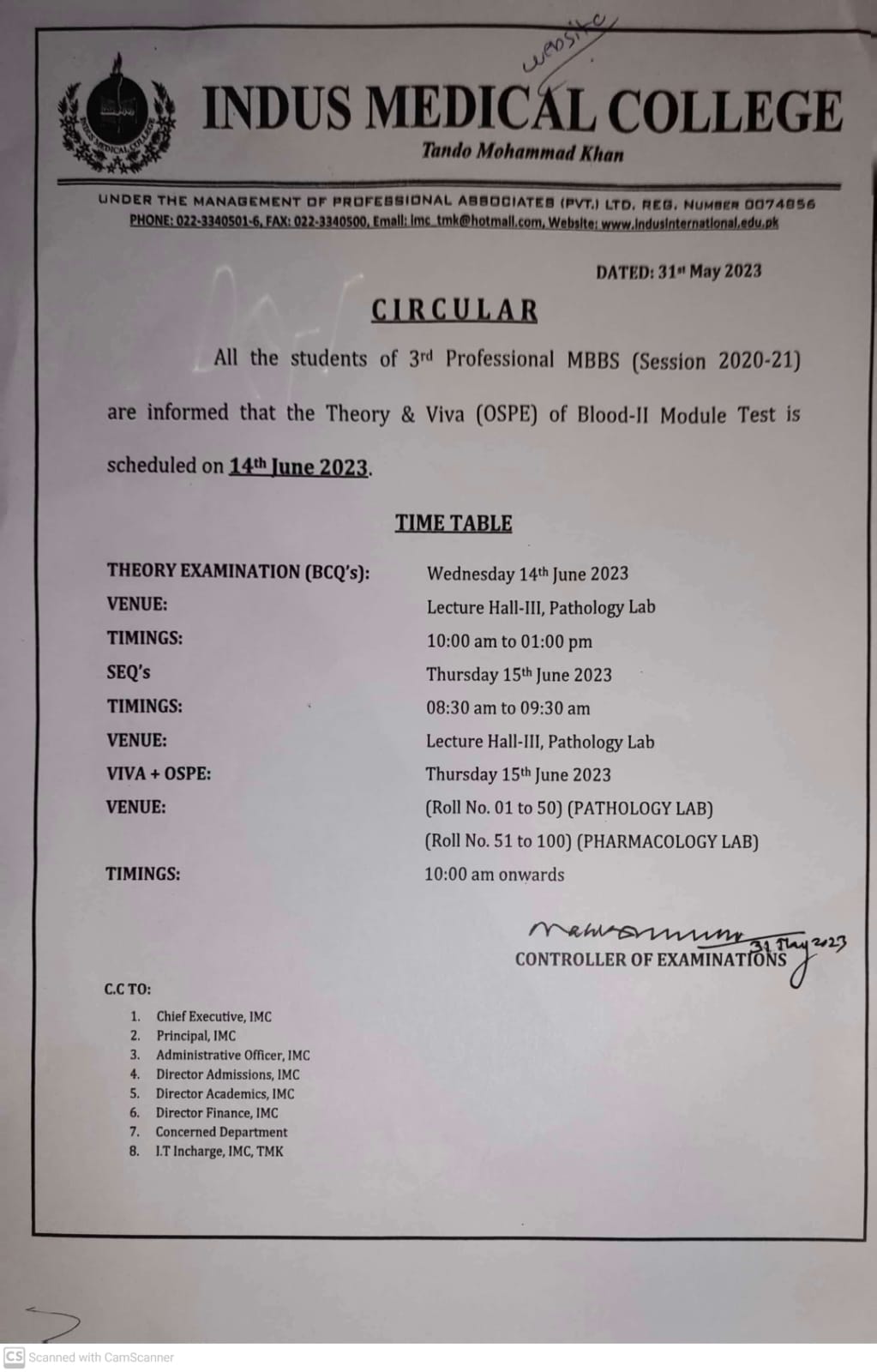 TIME TABLE OF OSPE/VIVA VOCE OF ALL BATCHES