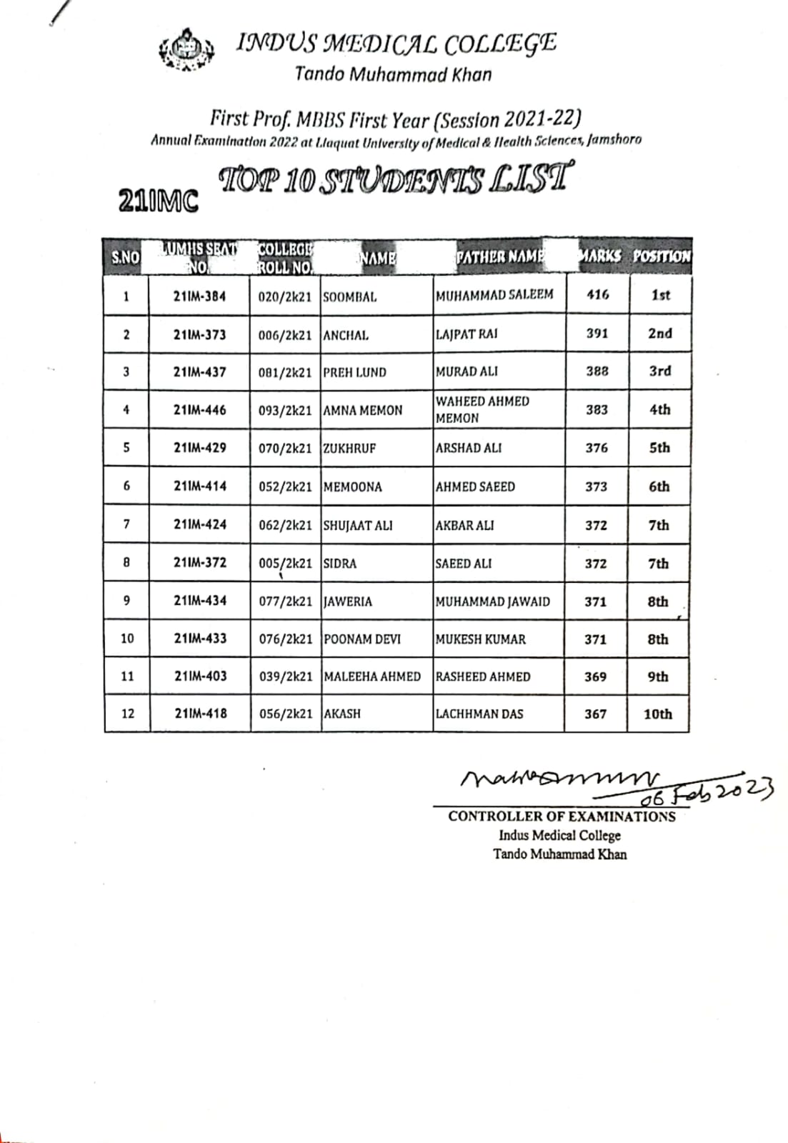 2ND PROF.MBBS 2ND YEAR (SESSION 2021-22)MODULE TEST RESULT